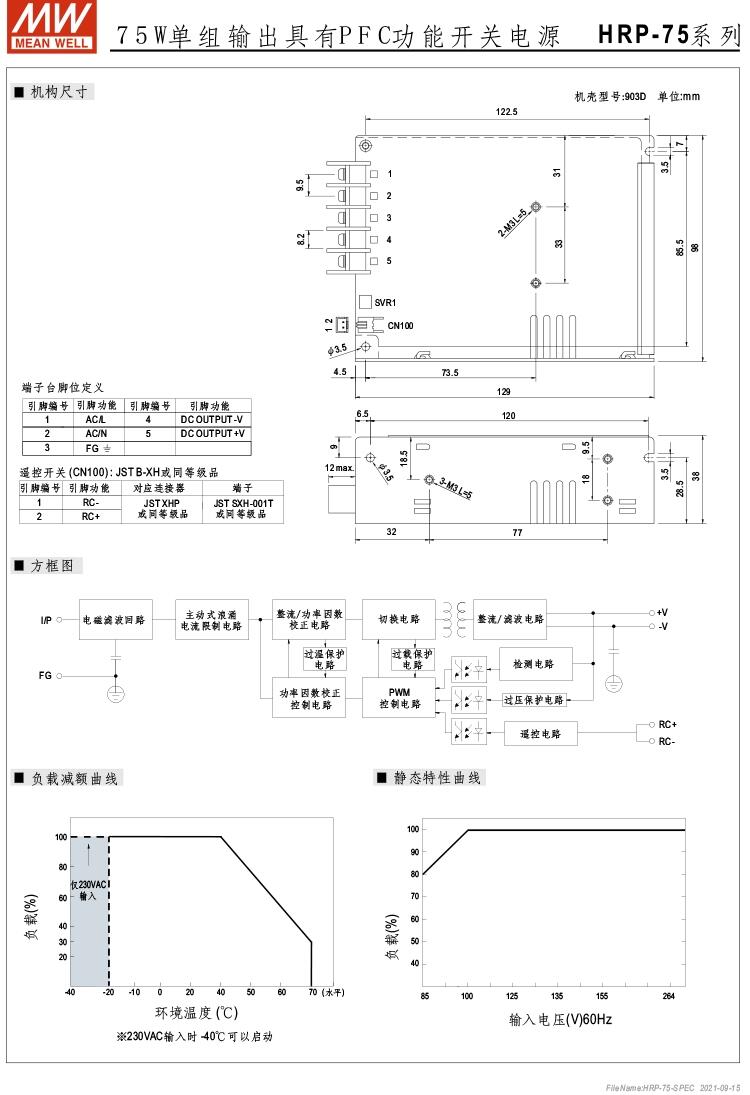 HRP-75-12  12V6.3A 75W单组输出具有PFC功能开关电源