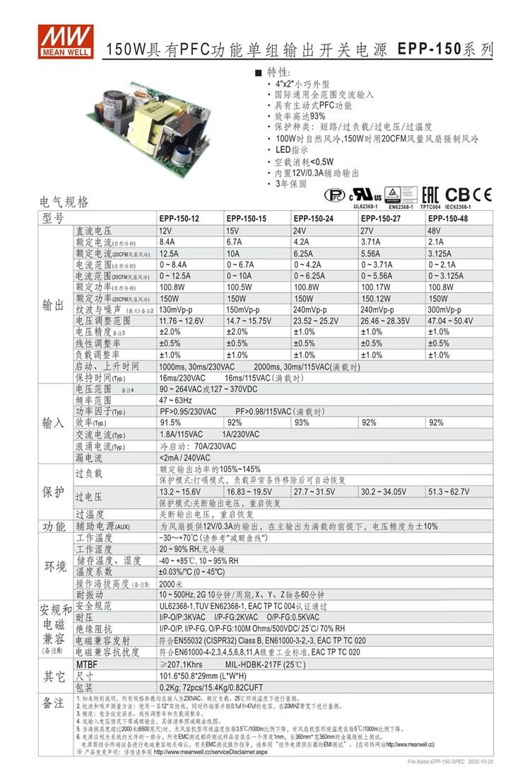 EPP-150-15   150W具有PFC功能单组输出开关电源
