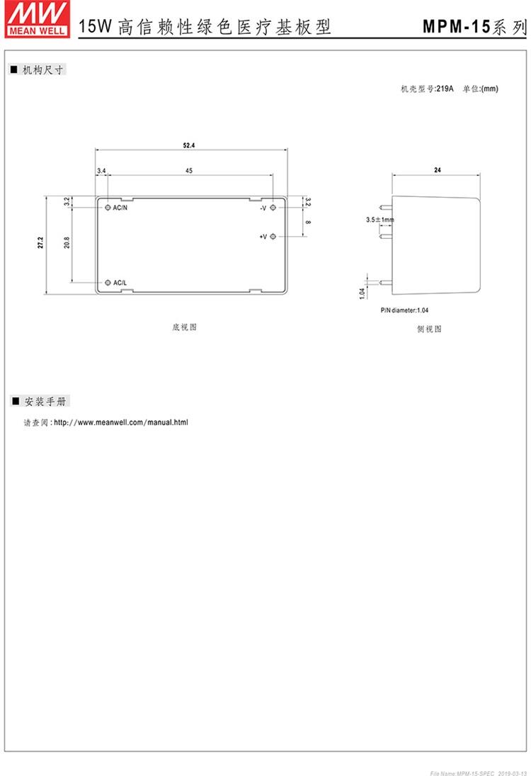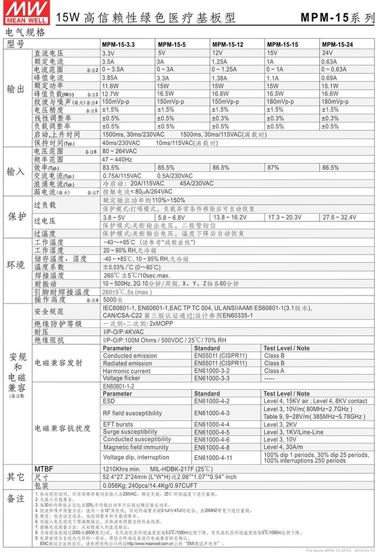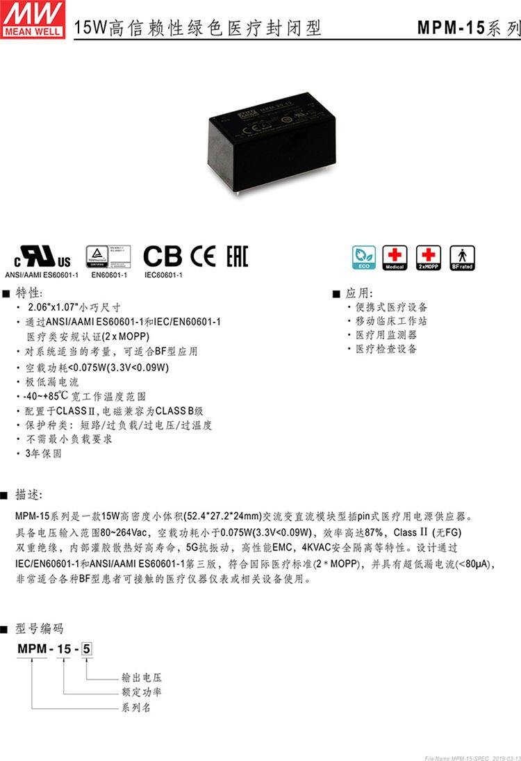 MPM-15-24 15W 高信赖性的绿色医疗封闭型