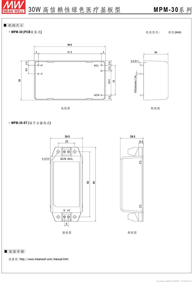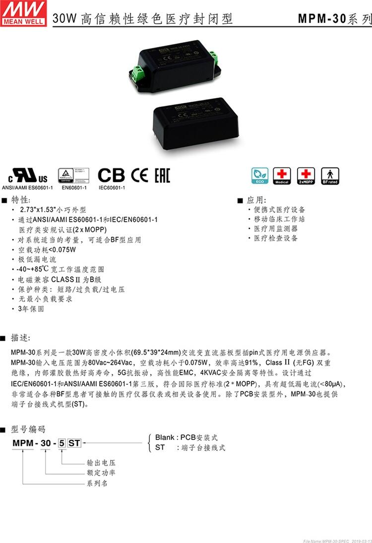 MPM-30-12 30W 高信赖性的绿色医疗封闭型