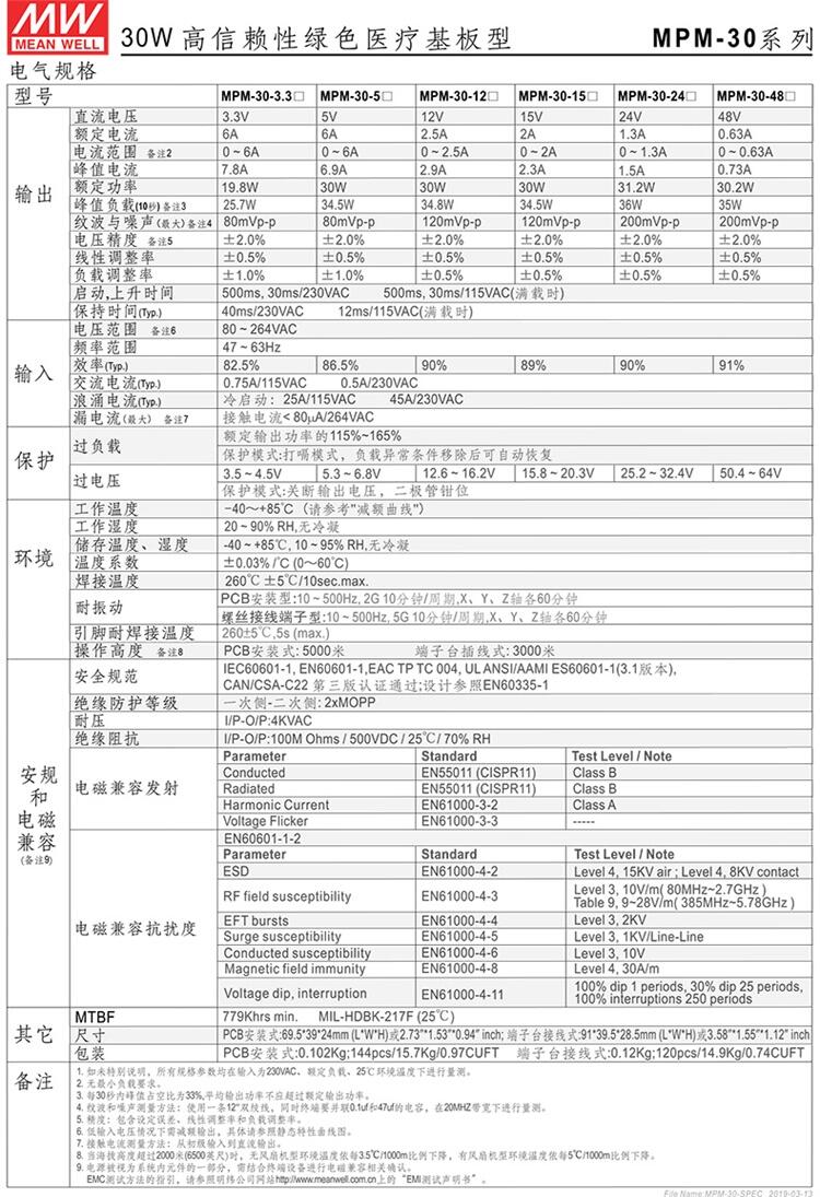 MPM-30-12   30W 高信赖性的绿色医疗封闭型