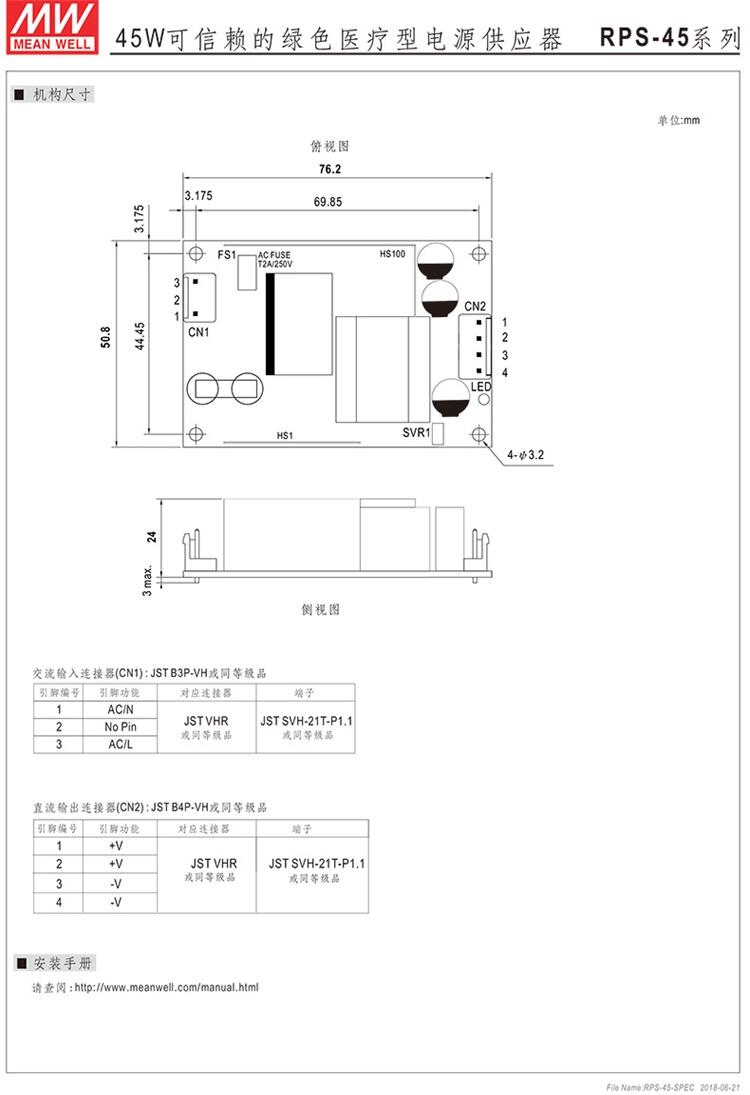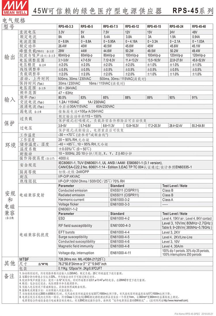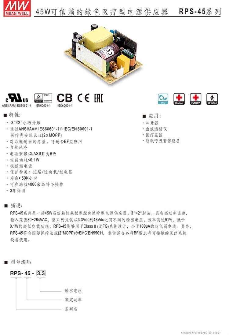 RPS-45-48   45W  可信赖的绿色医疗型电源供应器