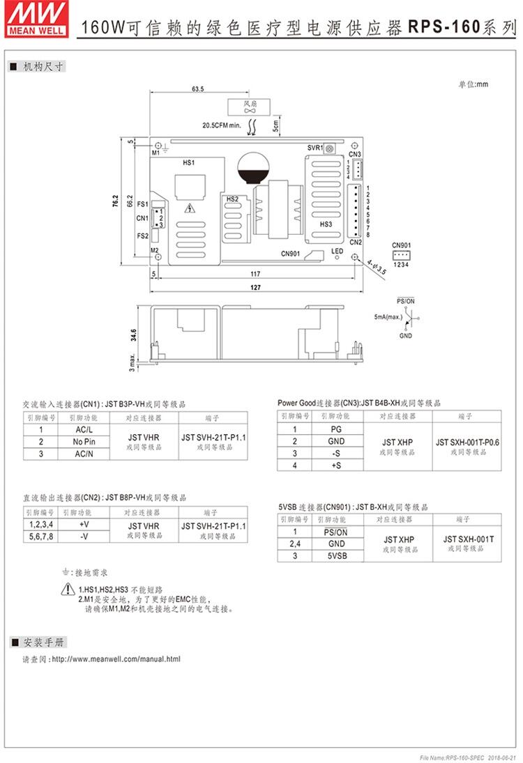 RPS-160-5  160W 5V30 A 可信赖的绿色医疗型电源供应器