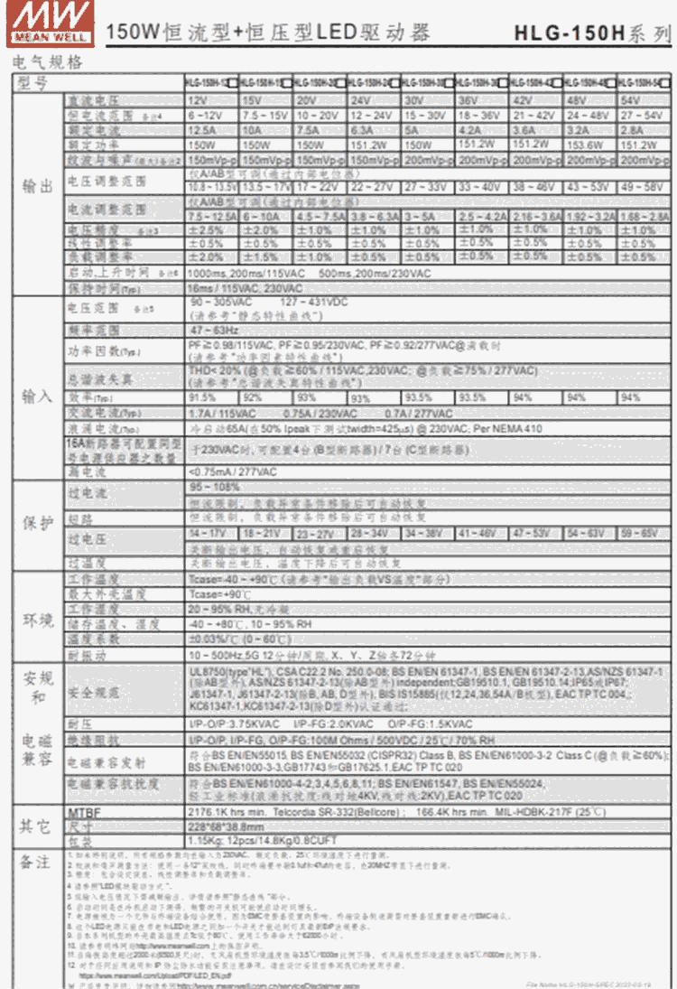 HLG-150H-15 150W 恒流型+恒压型LED驱动器