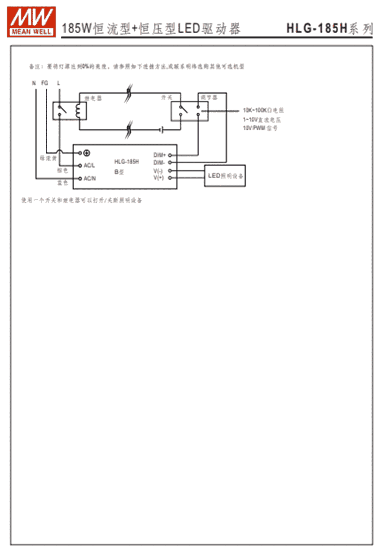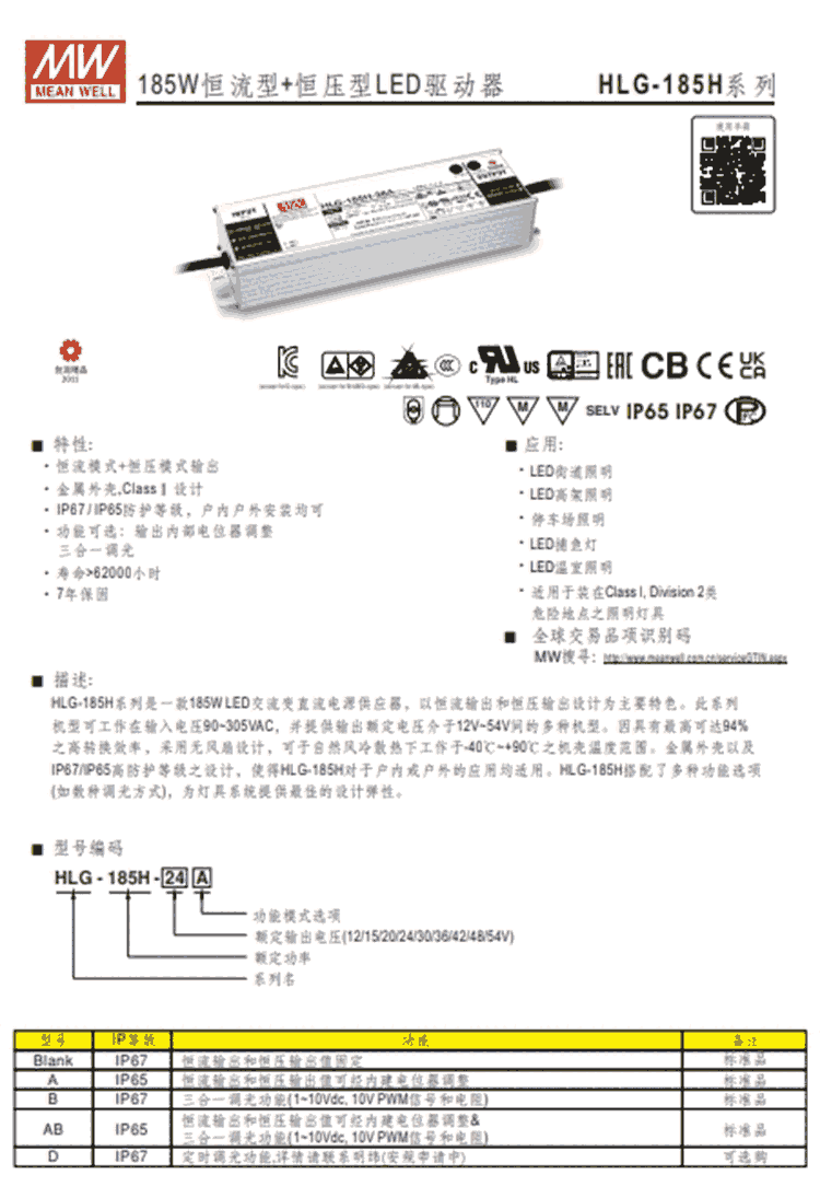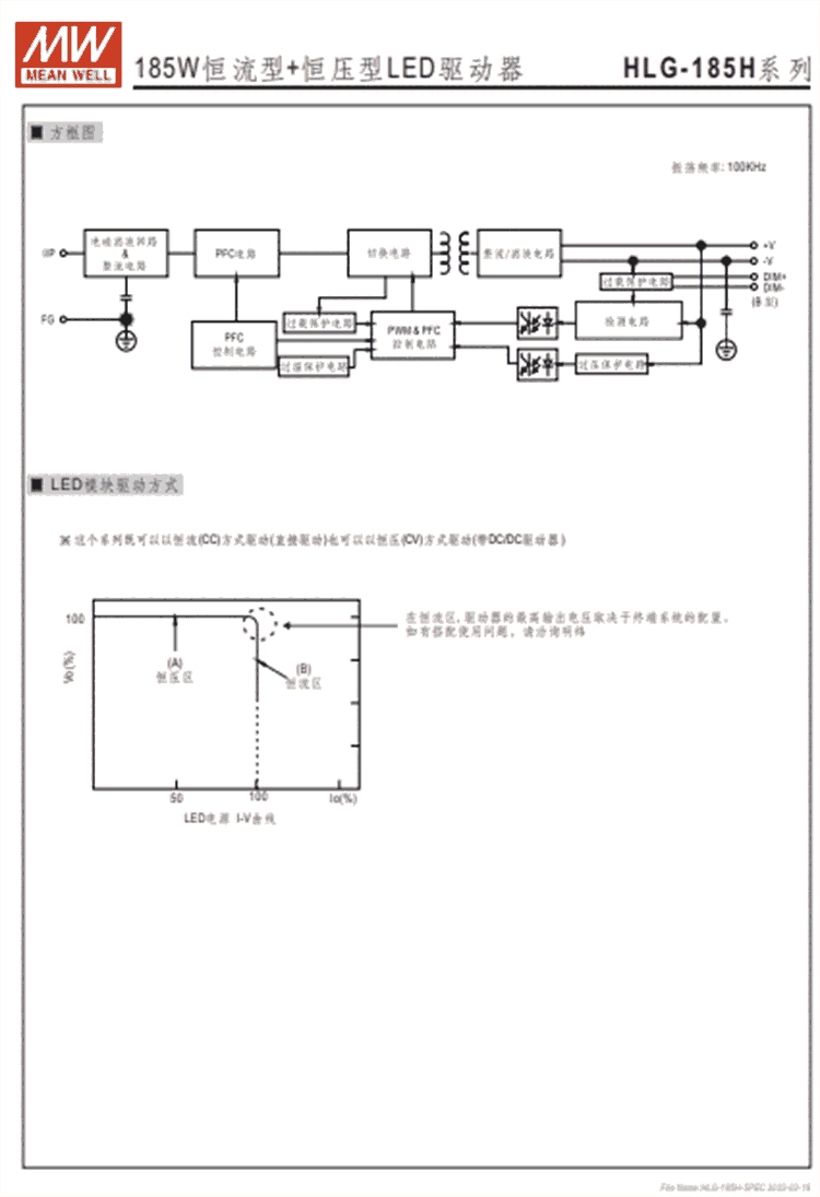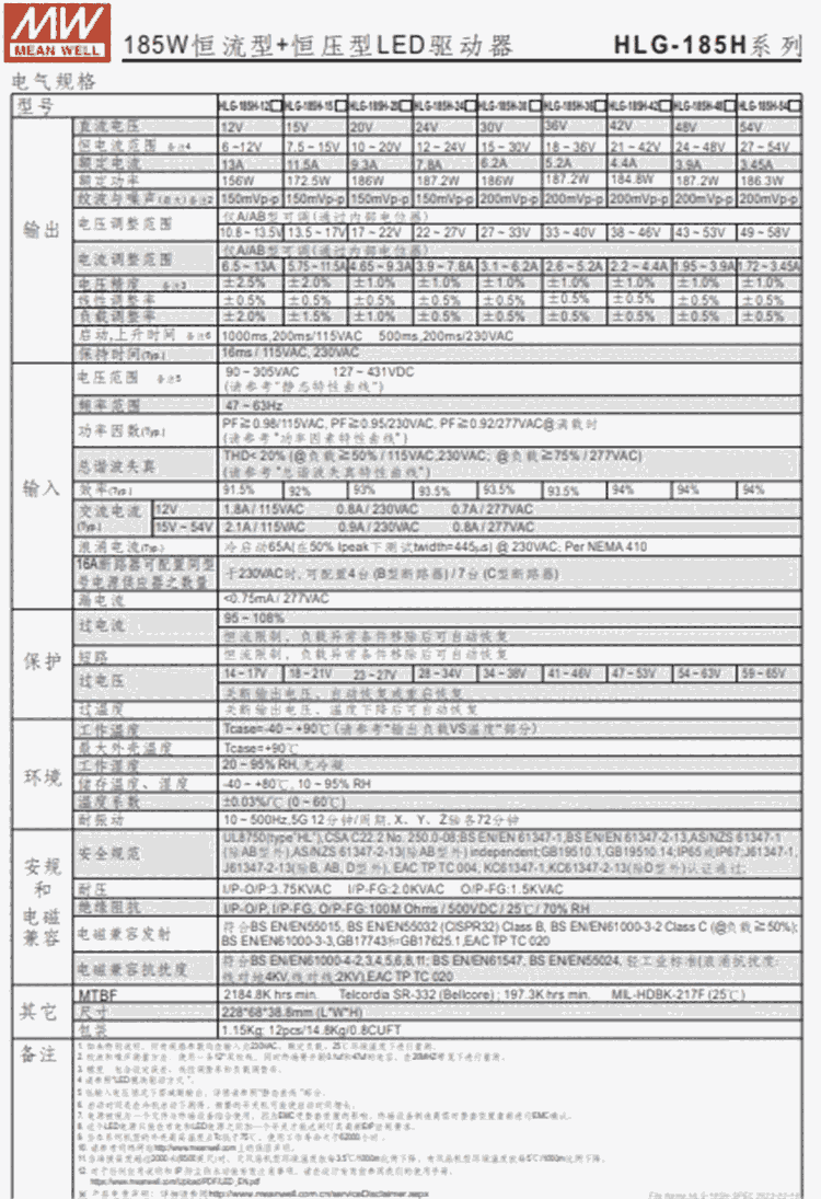 HLG-185H-24 185W 恒流型+恒压型LED驱动器