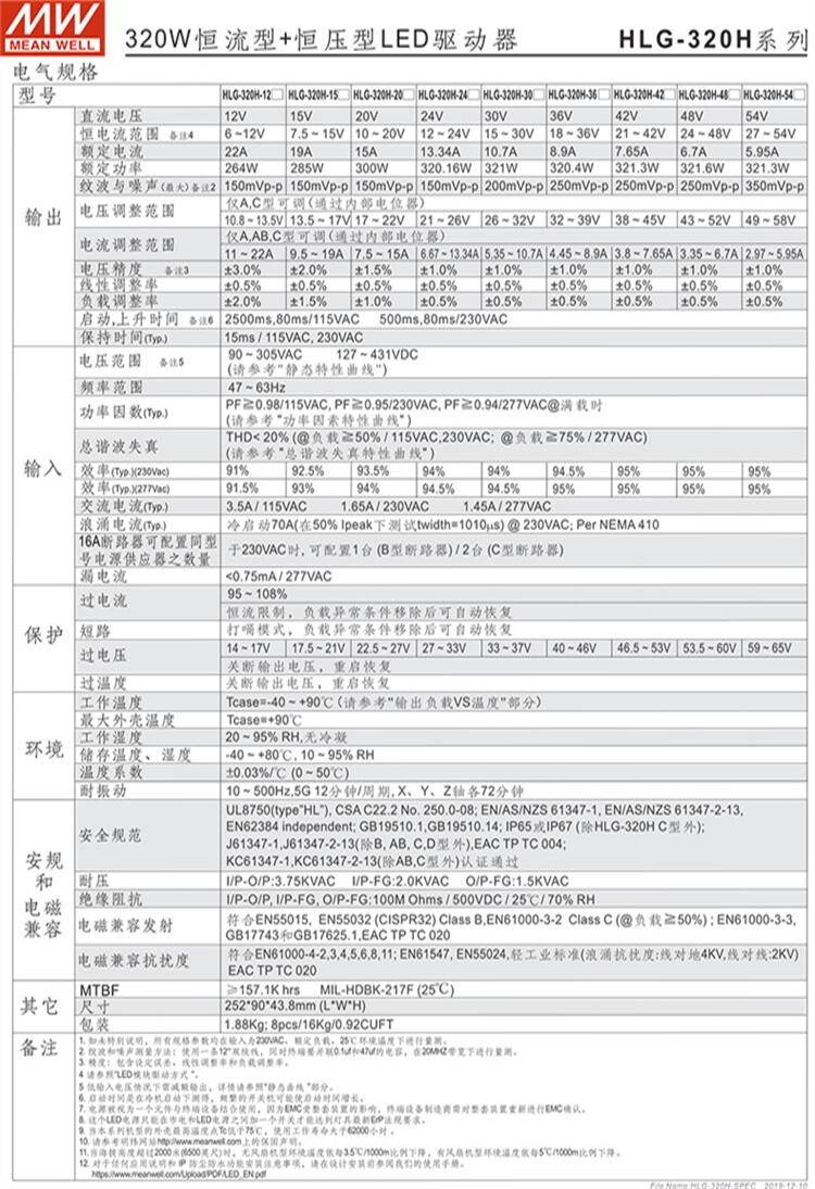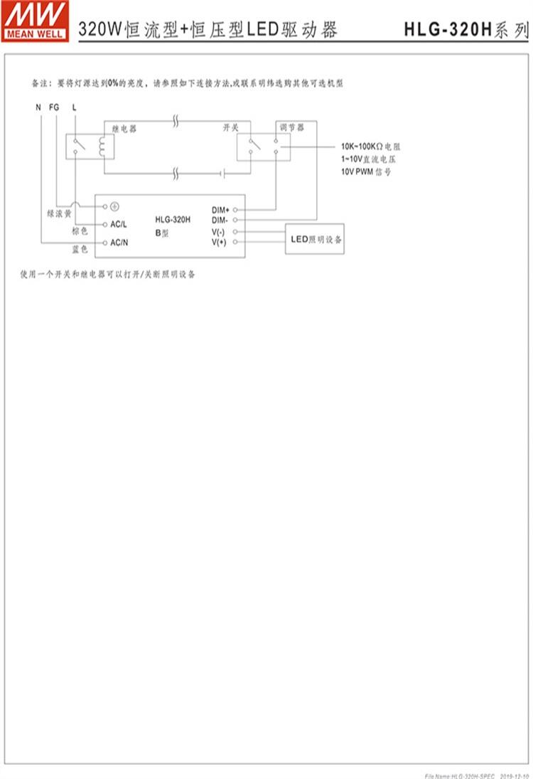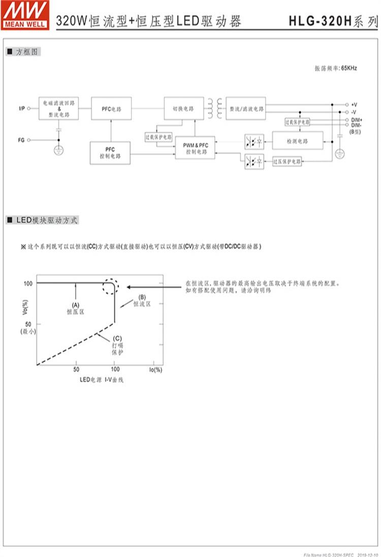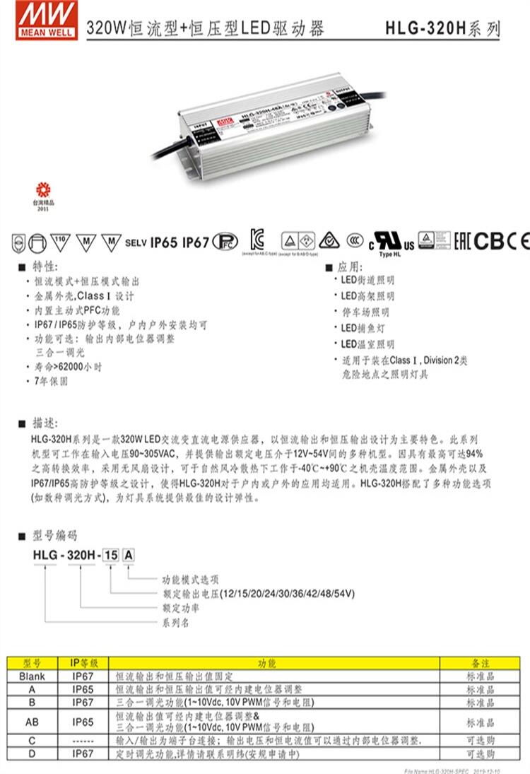 HLG-320H-24 320.16W恒流型+恒压型LED驱动器