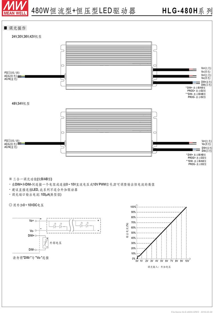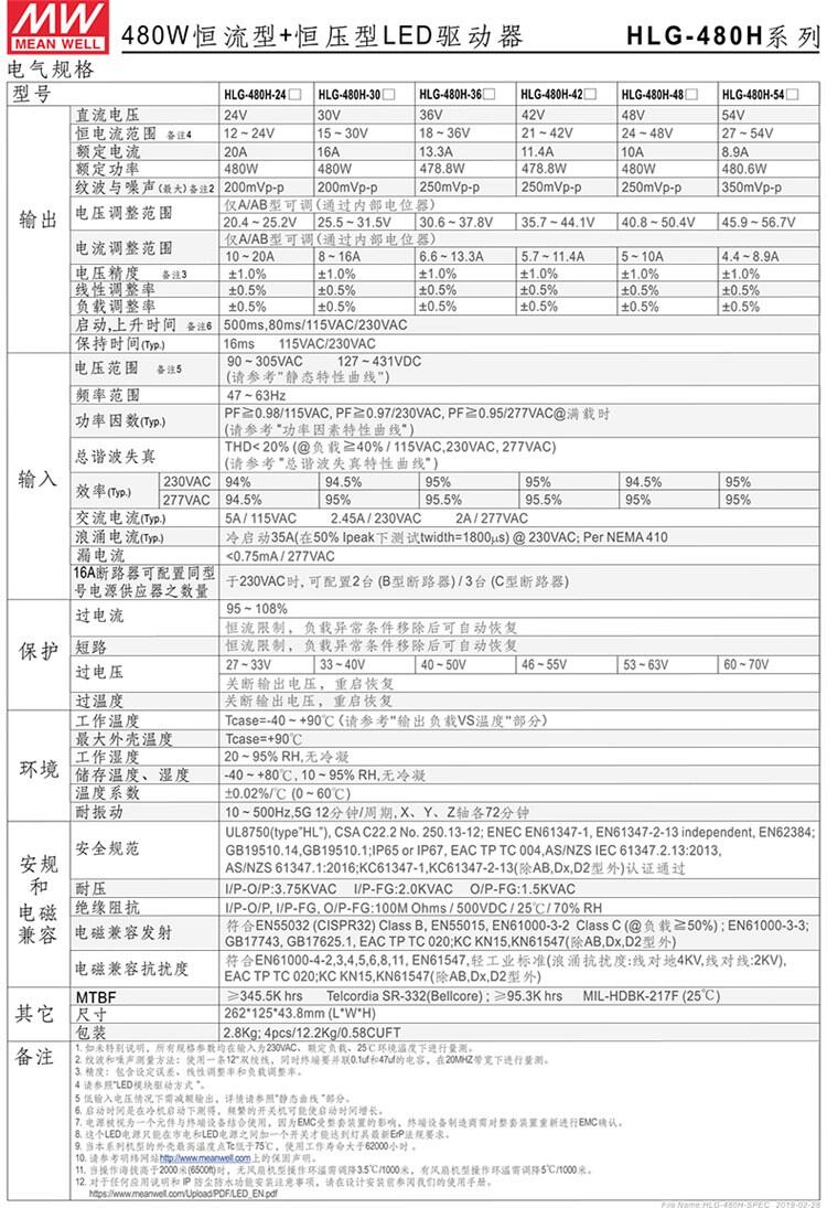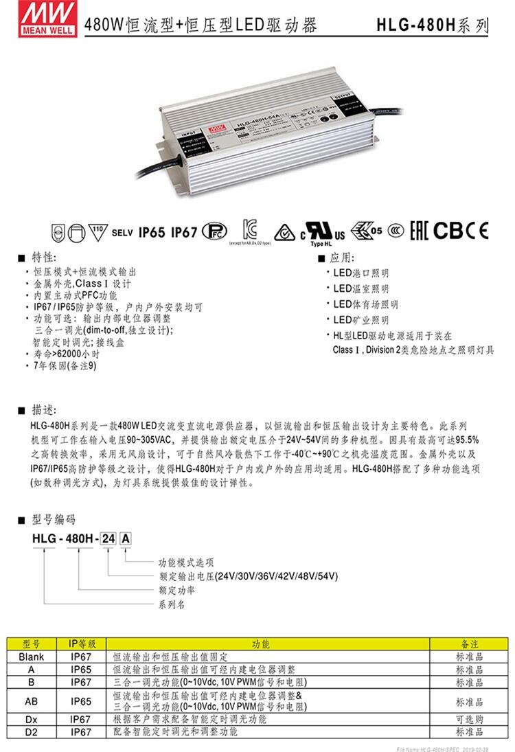 HLG-480H-24B 480W恒流型+恒压型LED驱动器