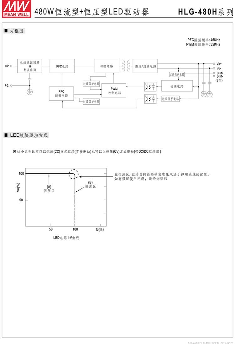 HLG-480H-24B  480W恒流型+恒压型LED驱动器