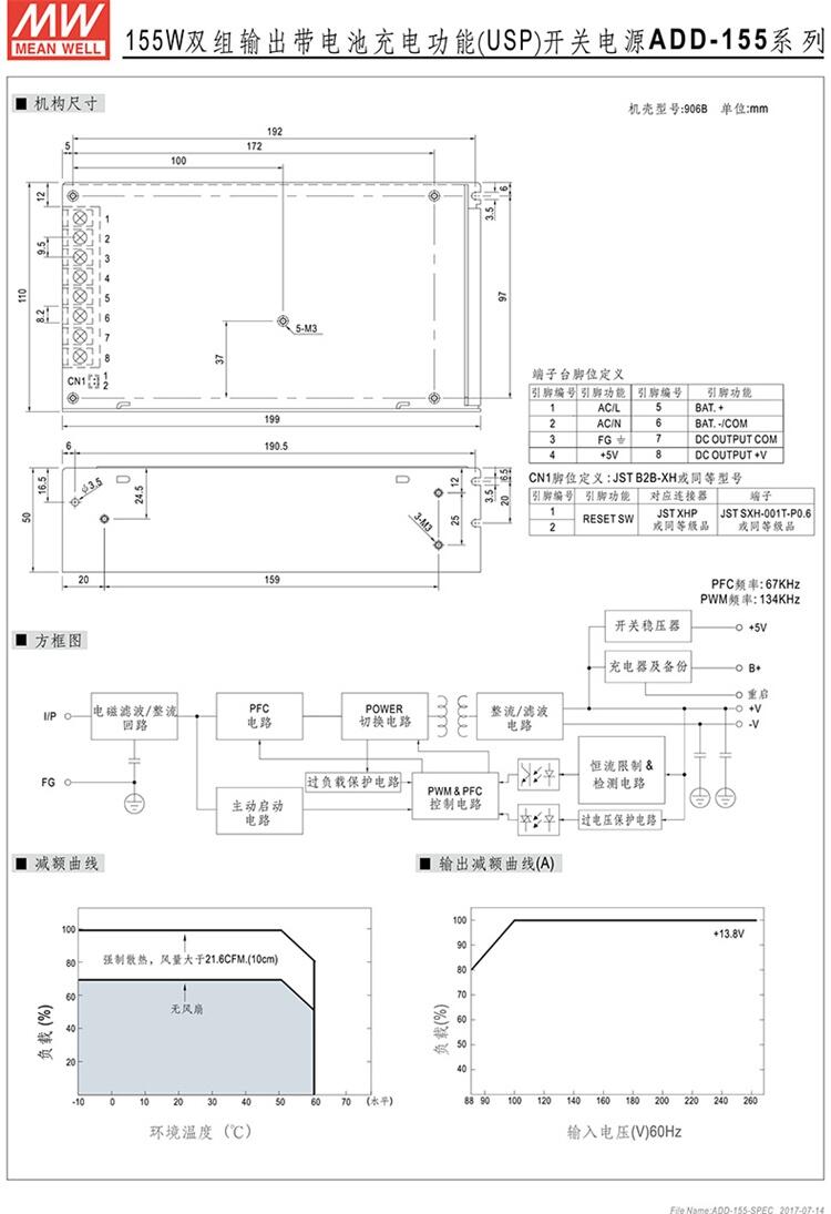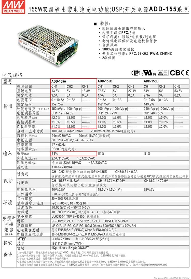 ADD-155A 152.75W双组输出带电池充电功能(USP)开关电源
