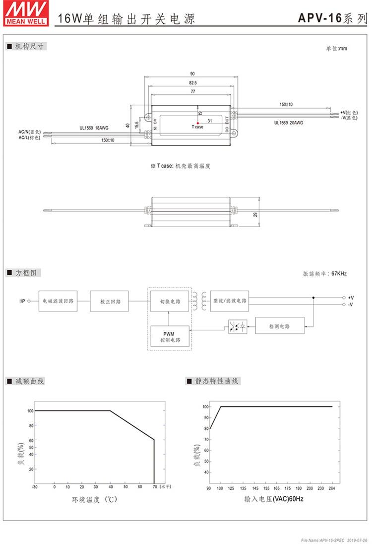 APV-16-24 16.08W 恒压LED照明单组输出开关电源