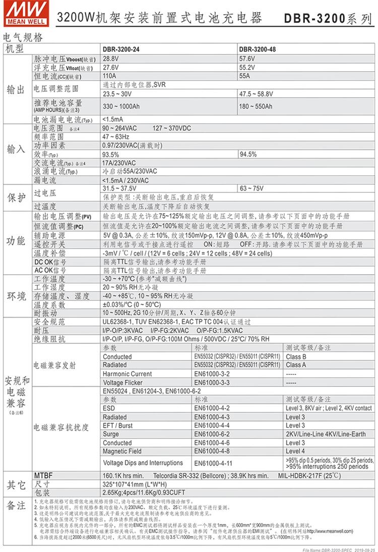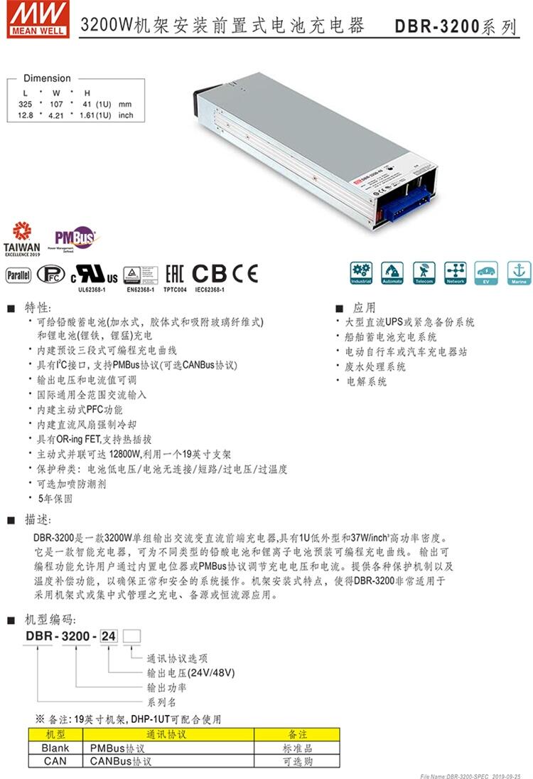 DBR-3200-24  3200W机架安装前置式电池充电器