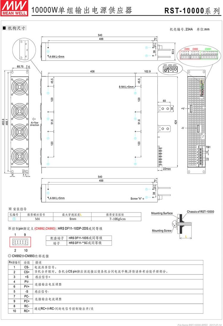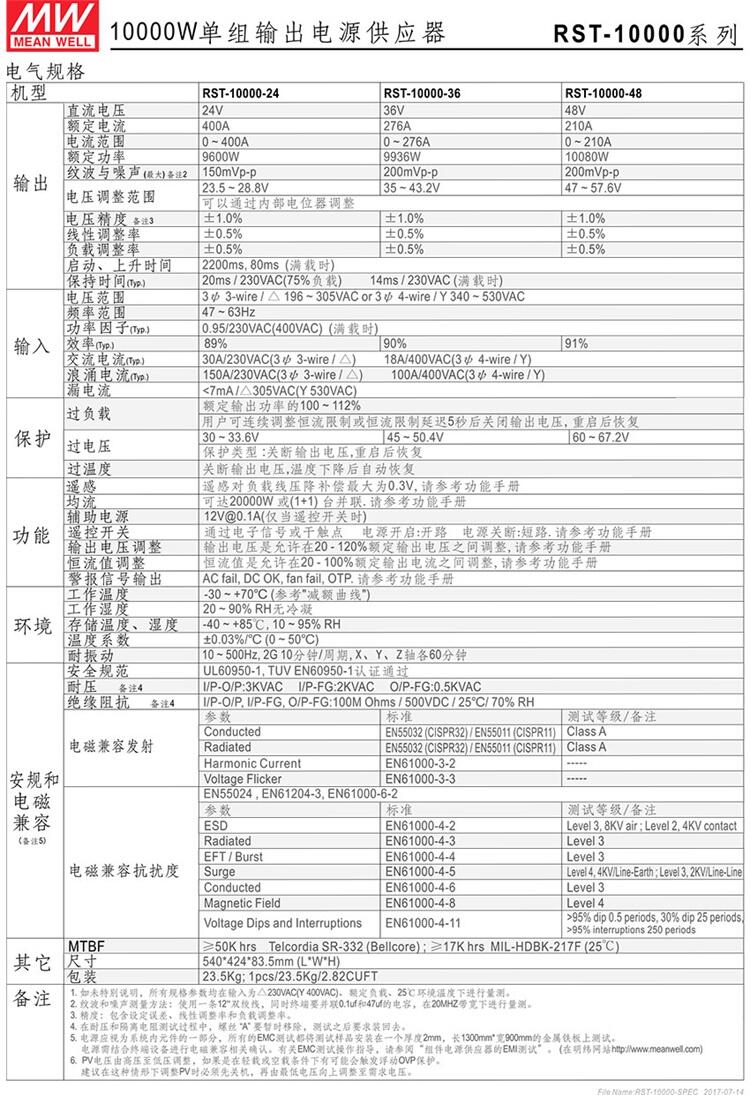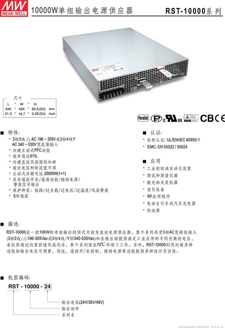 RST-10000-36  9936W单组输出大功率PFC功能电源供应器