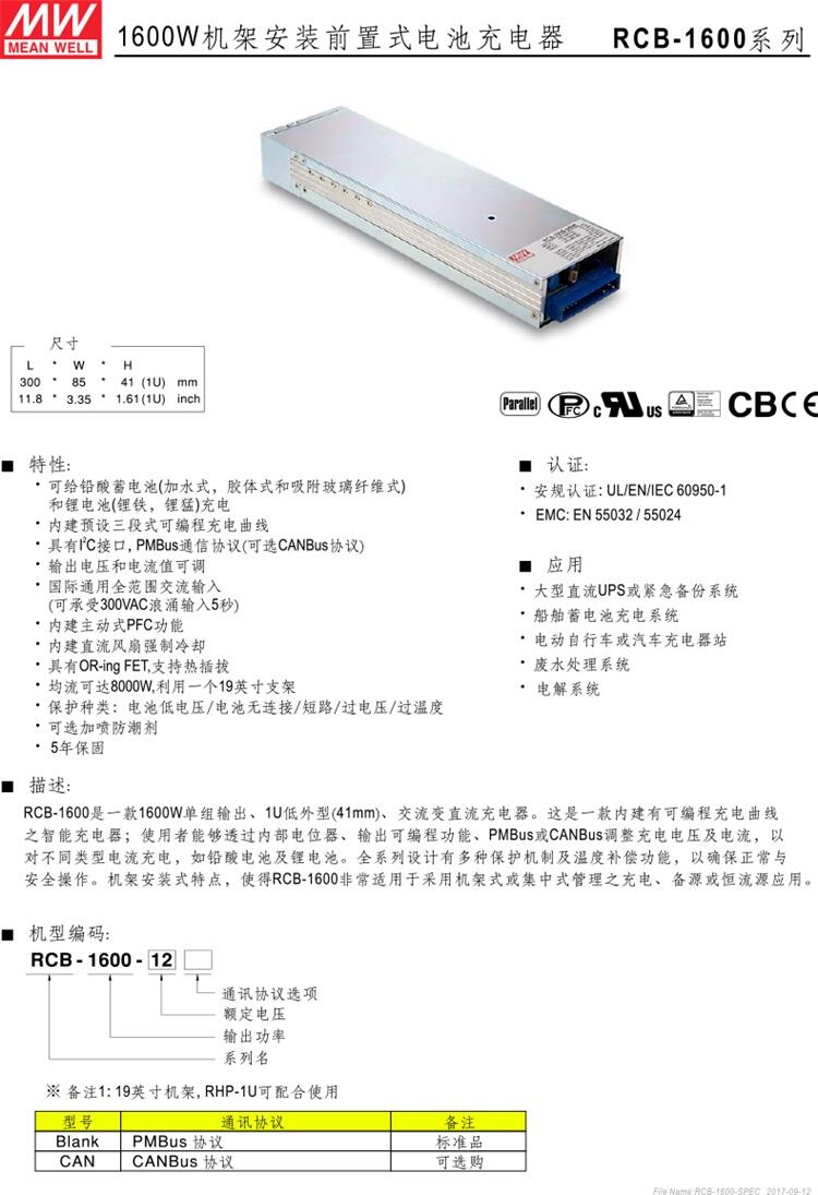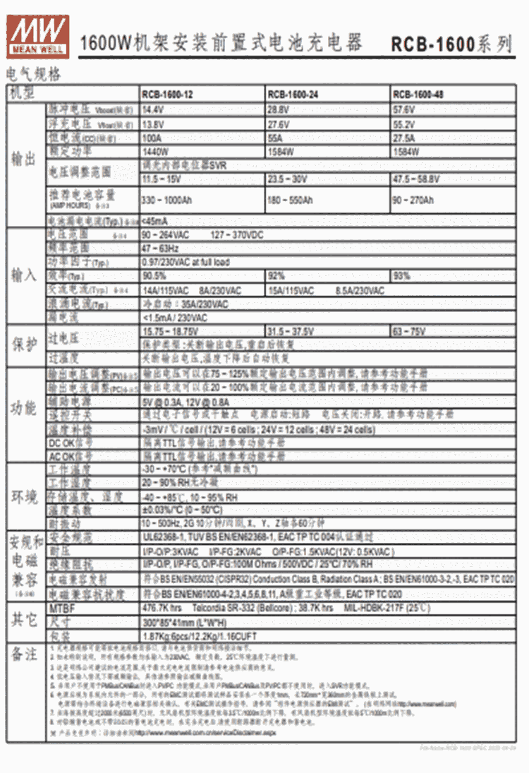 RCB-1600-48  1584W机架安装前置式电池充电器