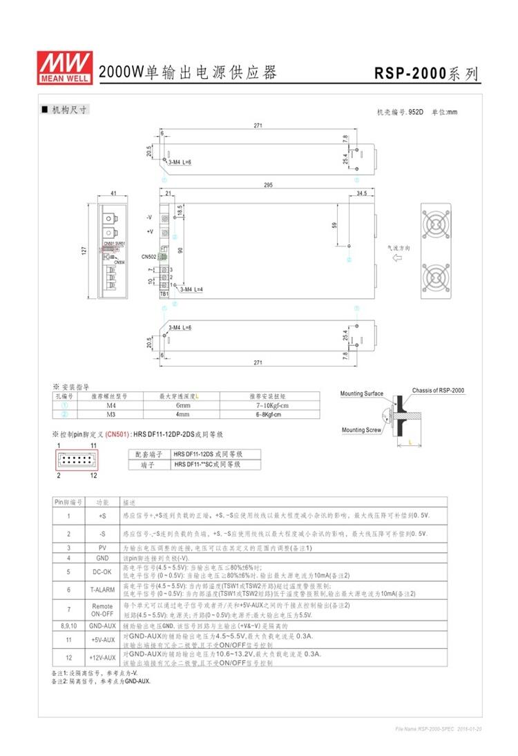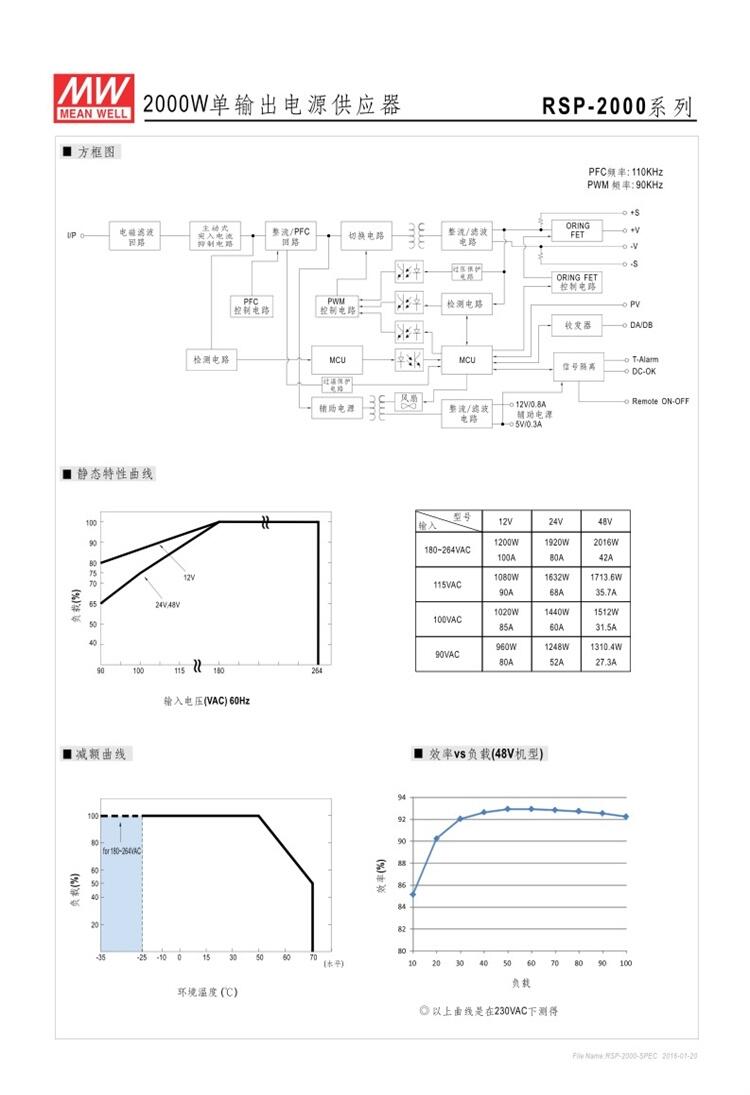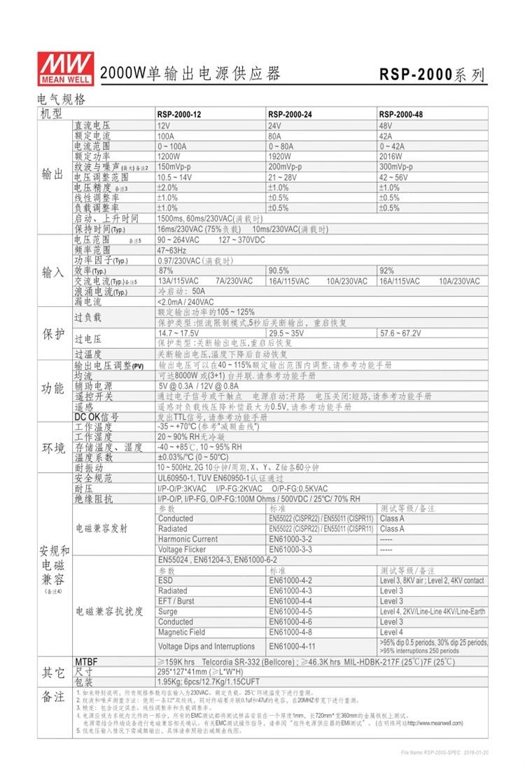 RSP-2000-48  高效PFC超薄可调电压单组输出电源供应器