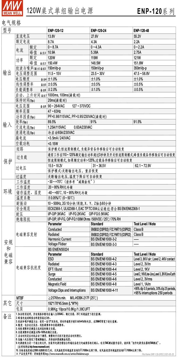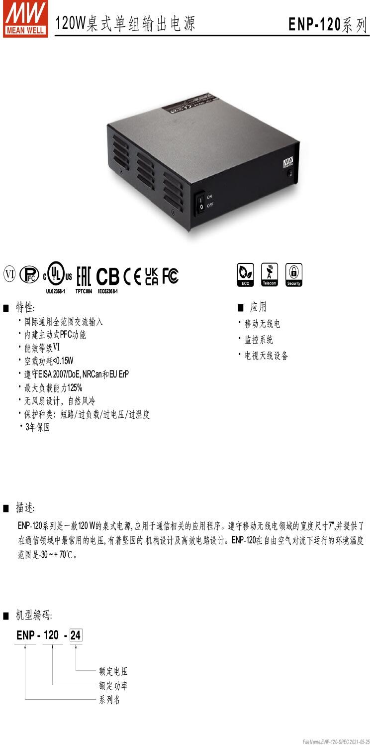 ENP-120-12 120W桌式单组输出电源 明纬电源
